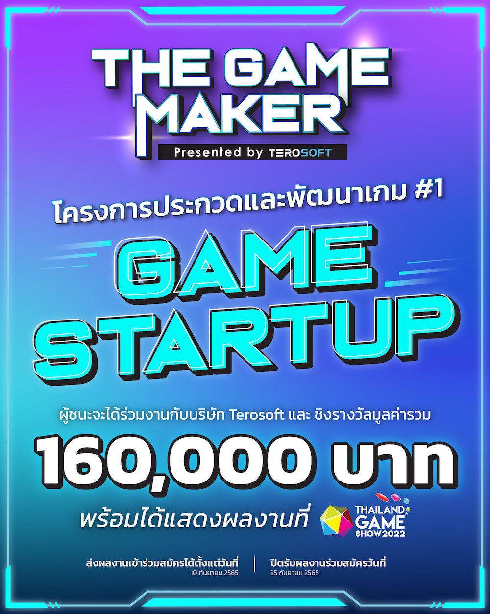 The Game Maker โครงการประกวดและพัฒนาเกม เปิดรับสมัครผู้ที่มีใจรักในการสร้างเกม เข้าร่วมโชว์ผลงานกับบริษัท Terosoft ในมหกรรมเกมสุดยิ่งใหญ่แห่งเอเชียตะวันออกเฉียงใต้อย่าง Thailand Game Show 2022 และไปให้สุดยิ่งกว่าคือได้รับสิทธิ์ร่วมงานกับ Terosoft ในการพัฒนาเกมขึ้นสู่ Web 3.0 พร้อมการสนับสนุนจาก Terosoft ในการทำมาร์เก็ตติ้งและขยายโอกาสทางธุรกิจไปสู่ตลาดโลก โดยสามารถสมัครเข้าร่วมโครงการ The Game Maker ได้ตั้งแต่วันนี้ – 25 กันยายน 2565