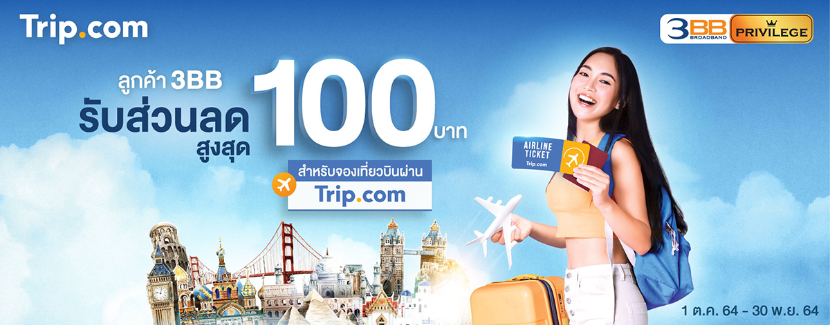 ให้บริการการจองเที่ยวบิน โรงแรม และตั๋วรถไฟออนไลน์ จองโรงแรมและที่พักได้มากกว่า 1,200,000 แห่ง เที่ยวบินสู่เมืองท่องเที่ยวยอดนิยมทั่วโลกกว่า 5,000 เมือง และตั๋วรถไฟใน 5 ประเทศ ได้แก่ สหราชอาณาจักร เยอรมนี เกาหลีใต้ จีนไต้หวันและจีน สิทธิพิเศษสำหรับลูกค้า 3BB รับส่วนลด 100 บาท สำหรับการจองเที่ยวบินขั้นต่ำ 5,000 บาท หรือส่วนลด 50 บาท สำหรับการจองเที่ยวบินขั้นต่ำ 2,500 บาท และส่วนลดสูงสุด 6% สำหรับการจองที่พัก (ส่วนลดสูงสุดไม่เกิน 1,800 บาท) ผ่าน Trip.com