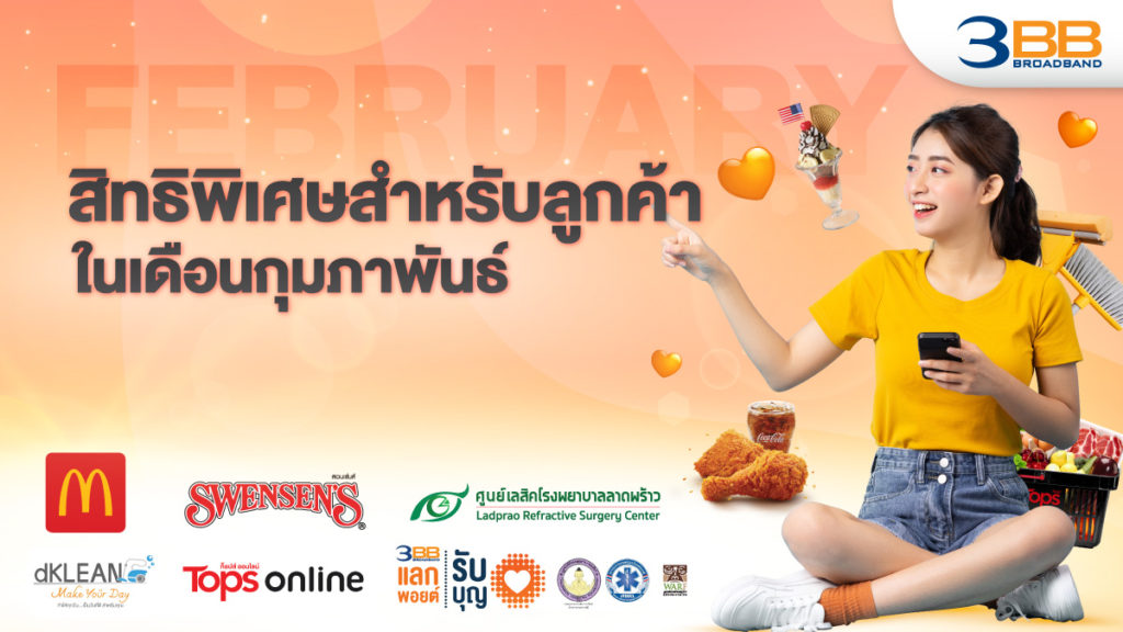 เอ็นจอยกับสิทธิพิเศษต่างๆหรือร่วมปันน้ำใจกับโครงการจาก 3BB ได้แล้ววันนี้ พร้อมตรวจสอบรายละเอียดเพิ่มเติมของสิทธิ์อื่นๆได้ที่ www.3bbprivilege.com หรือโทร. Contact Center 1530