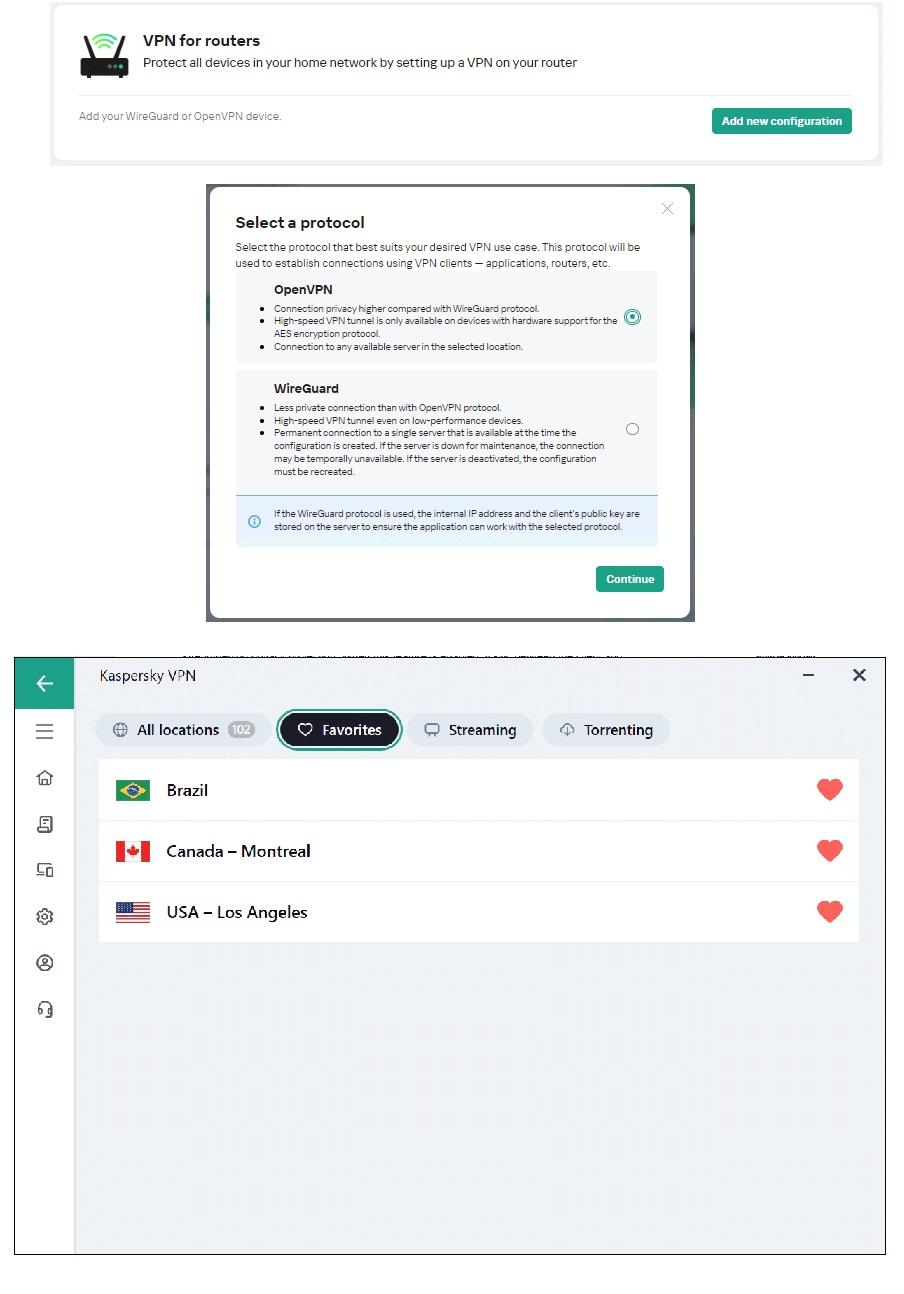 In addition to OpenVPN, WireGuard also adds more than 100 supported locations worldwide to routers. My Kaspersky also now supports improved flow routing, increases routing efficiency, making online experiences faster and more convenient for users.