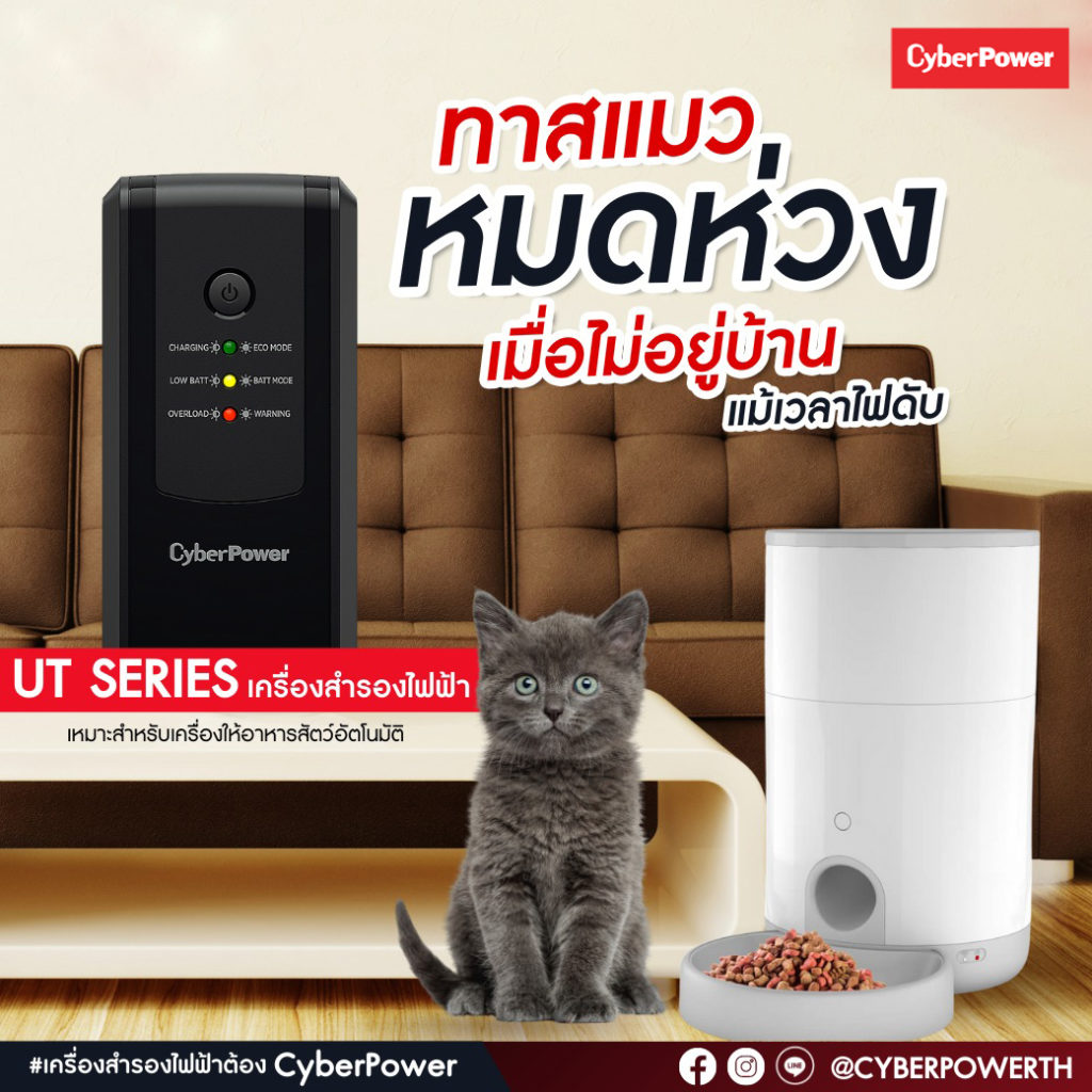 โดยเฉพาะในช่วงเทศกาลสงกรานต์ วันหยุดยาวนี้ ทาสแมวหมดห่วง…เมื่อไม่อยู่บ้าน แค่มี CyberPower UT series เครื่องสำรองไฟฟ้า ที่เหมาะอย่างยิ่งสำหรับใช้กับเครื่องให้อาหารสัตว์อัตโนมัติ