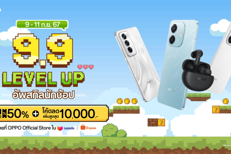 OPPO แบรนด์อุปกรณ์อัจฉริยะชั้นนำระดับโลก จัดหนักจัดเต็มลดกระหน่ำต้อนรับเดือนกันยายน มอบส่วนลดสุดคุ้มจัดเต็มผ่านแคมเปญ “OPPO 9.9 LEVEL UP อัพสกิลนักช้อป” มอบส่วนลดสมาร์ตโฟนและอุปกรณ์ IoT สูงสุด 50% และคูปองลดสูงสุด 10,000 บาท เฉพาะวันที่ 9 – 11 กันยายน 2567 ที่ OPPO Official Store บน Shopee และ Lazada