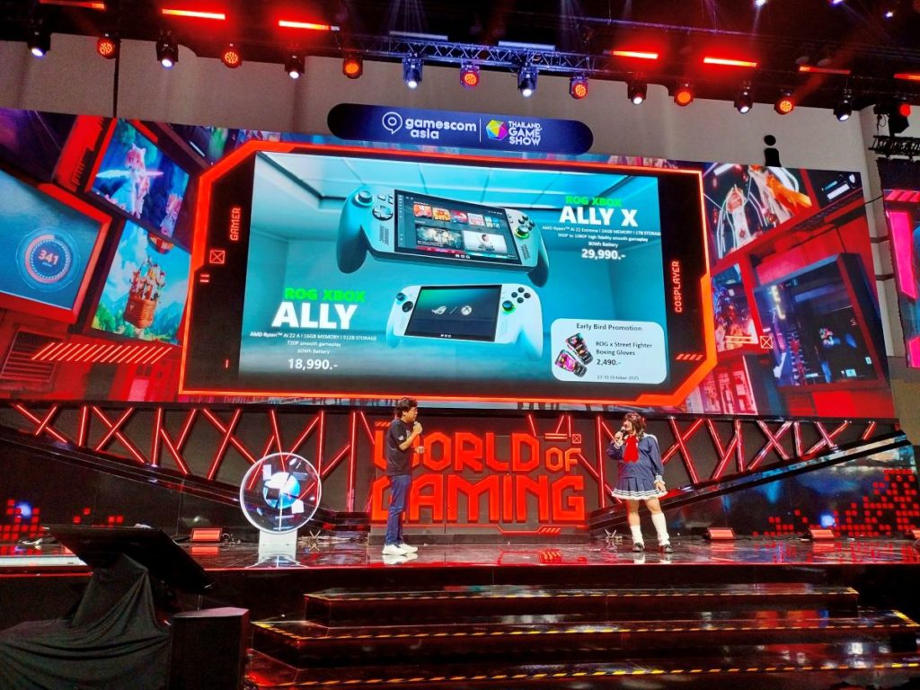 ทาง ROG จึงขอเชิญชวนเหล่าเกมเมอร์สมาร่วมสัมผัส ROG Xbox Ally ทั้ง 2 รุ่นพร้อมกันเป็นครั้งแรกในประเทศไทย ได้ที่งาน gamescom asia X Thailand Game Show 2025 ตั้งแต่วันที่ 17-19 ตุลาคม 2568 ณ ทางเข้า Exhibition Hall 4 บูธ P5 ศูนย์การประชุมแห่งชาติสิริกิติ์ พร้อมเกมมิ่งโน้ตบุ๊กและอุปกรณ์สุดแรงจาก ROG อีกเพียบ พิเศษ! พบกับอินฟลูฯ ชื่อดัง ท็อฟฟี่เป็นตุ๊ดซ่อมคอม และกิจกรรมสุดมันส์ลุ้นรับ ROG Xbox Ally วันละเครื่อง! มูลค่ารวมกว่า 50,000 บาท