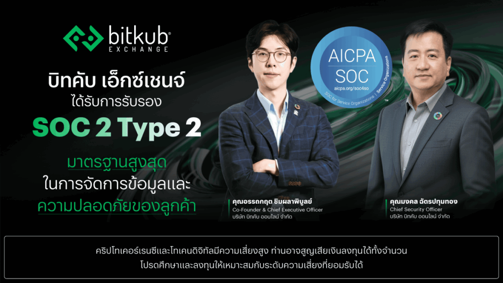 คุณอรรถกฤต ชิมผลาพิบูลย์ Co-Founder & Chief Executive Officer บริษัท บิทคับ ออนไลน์ จำกัด กล่าวว่า “การได้รับการรับรอง SOC 2 Type 2 ถือเป็นความสำเร็จที่สะท้อนถึงความมุ่งมั่นของบิทคับ เอ็กซ์เชนจ์ในการสร้างแพลตฟอร์มที่ปลอดภัย โปร่งใส และเชื่อถือได้ สิ่งสำคัญคือการมองภาพรวมขององค์กรและการวางกลยุทธ์เพื่อให้ทุกกระบวนการทำงานสอดคล้องกับมาตรฐานสากล การมี SOC 2 Type 2 ไม่เพียงแต่ยืนยันว่าเราออกแบบระบบควบคุมได้ดี แต่ยังยืนยันว่าการปฏิบัติในทุกระดับขององค์กรดำเนินไปอย่างมีประสิทธิภาพ สม่ำเสมอ และสร้างความมั่นใจสูงสุดให้กับผู้ใช้งานและพันธมิตรทางธุรกิจ”