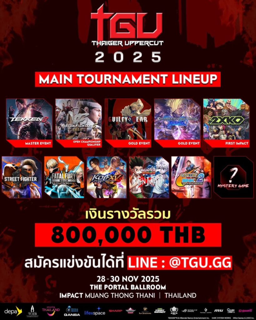 เตรียมพบกับ TGU 2025 งานแข่งเกมต่อสู้ที่ยิ่งใหญ่ที่สุดในภูมิภาคเอเชียตะวันออกเฉียงใต้ วันที่ 28-30 พฤศจิกายนนี้ ชิงเงินรางวัลรวมกว่า 800,000 บาท