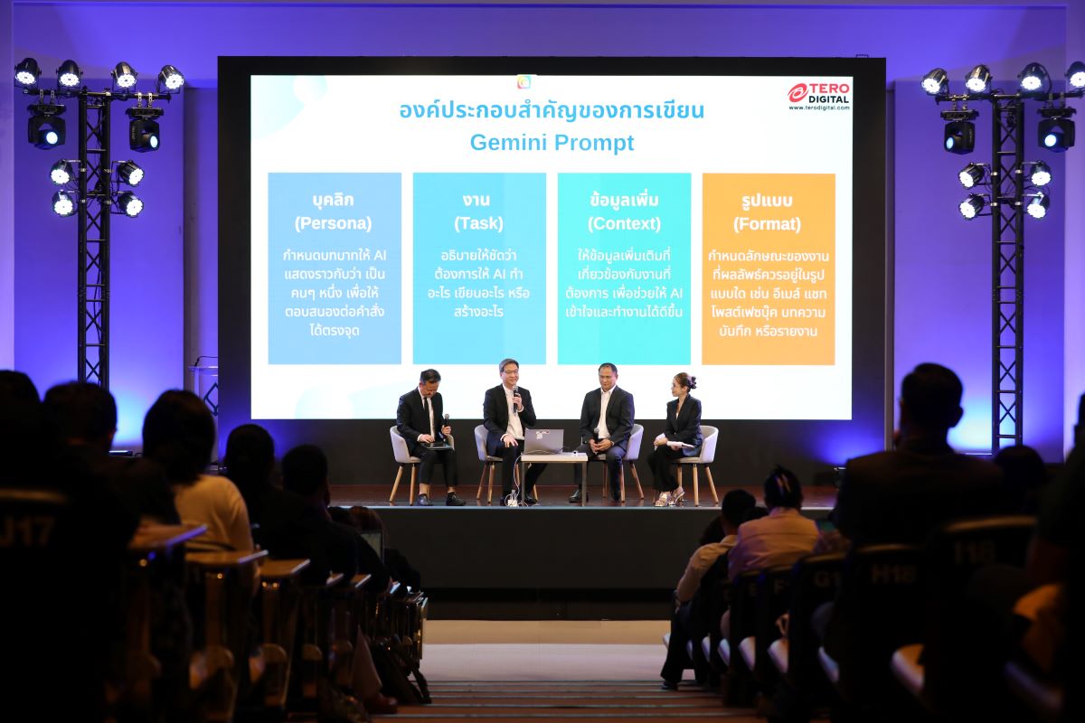 ขณะที่หัวข้อ “Practical Roadmap for Adopting AI in Organization” ได้รับเกียรติจาก คุณกิตติศักดิ์ เงินงอกงาม ผู้อำนวยการอาวุโส ฝ่ายพัฒนาธุรกิจด้านโครงสร้างพื้นฐานพลังงาน บริษัท เดลต้า อีเลคโทรนิคส์ (ประเทศไทย) จำกัด (มหาชน) และ คุณโชคชัย เอี่ยมฤทธิไกร รองกรรมการผู้จัดการ และกรรมการบริษัท บริษัท เทโร เอ็นเทอร์เทนเม้นท์ จำกัด (มหาชน) ร่วมพูดคุยและแชร์ประสบการณ์ เพื่อให้ผู้ประกอบการใช้เป็นแนวทางพิจารณาการนำ AI มาใช้ในธุรกิจ เพื่อให้เกิดผลลัพธ์และประโยชน์ที่ชัดเจนตามเป้าหมายที่ตั้งไว้
