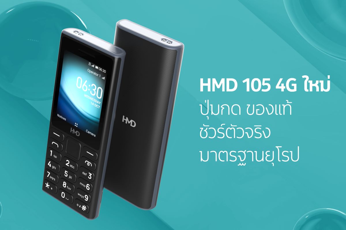 HMD ประเทศไทย ประกาศเปิดตัว HMD 105 4G โทรศัพท์มือถือปุ่มกดรุ่นใหม่ล่าสุด ที่มาพร้อมกับฟีเจอร์พื้นฐานครบครัน รองรับ 4G LTE ครอบคลุมทุกเครือข่าย ตอบโจทย์ผู้ที่ต้องการมือถือใช้งานง่าย ทนทาน แบตอึด มาตรฐานยุโรป พกพาสะดวก และราคาเข้าถึงได้ เพียง 990 บาท